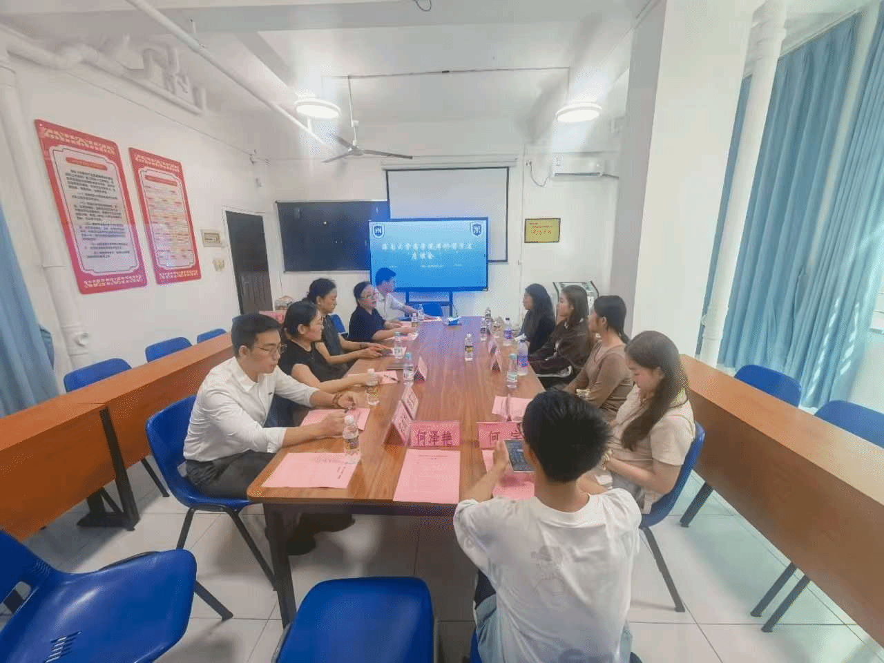 胡静首先介绍了学院当前留学生培养的重点工作与相关政策,转达了学院对同学们学习与生活的高度重视与关怀。她指出,本次座谈会旨在围绕留学生培养与发展,聚焦课程设置、课堂教学、管理服务等环节,并鼓励同学们畅所欲言。会上,留学生代表们结合自身学习经历,踊跃发言,既分享了在校遇到的困惑与需求,也谈及了个人发展规划。学院领导与教师认真聆听了每位同学的发言,并针对相关问题逐一作出了细致回应。