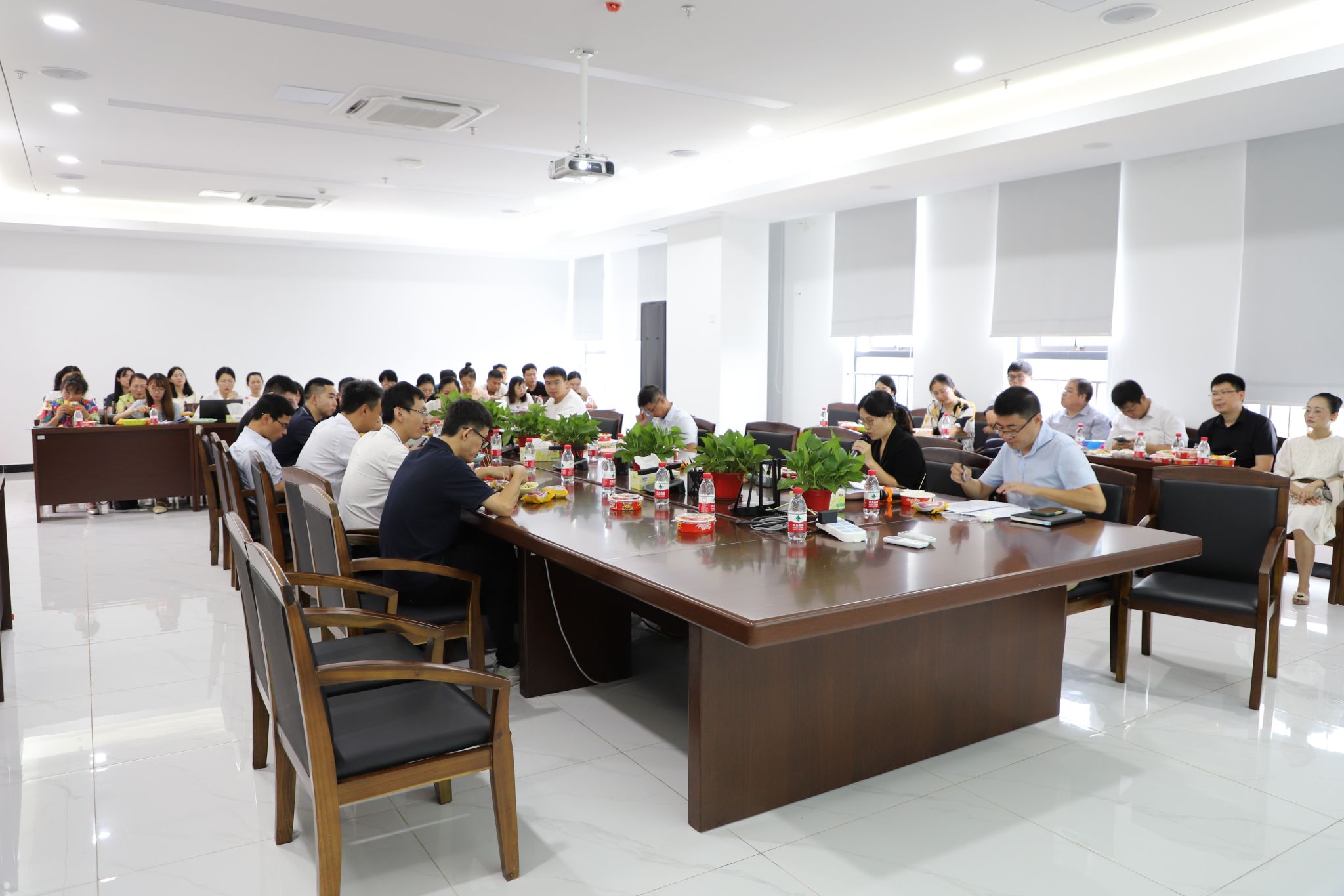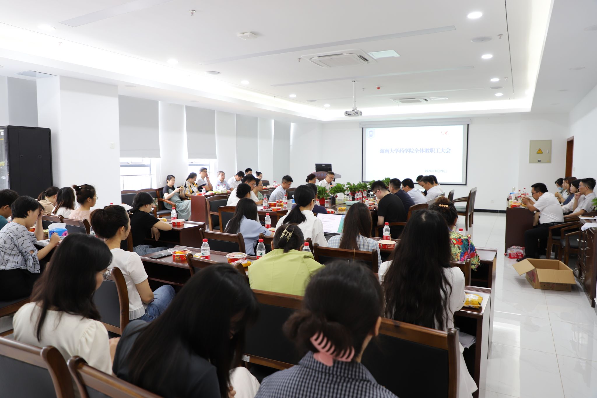 av女优在海口新药谷药学大楼515会议室召开新学期全体教职工大会,传达学校暑期工作会议精神。会议由学院党总支书记胡静主持,院长罗海彬、副院长黄玲、宋彦廷和六十余名教职工参加。